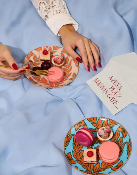 Make snacking stunning again! Great for bread, salad or aperitivo course, this sophisticated side plate set is crafted in finest Italian porcelain and finished with a hand-painted 18k gold rim. Arriving in two romantic hues, it’s an automatic opportunity to play – create your own curated set with your favorite colors. It’s smaller than our Dessert Plate, and highly versatile. Buon appetito!
