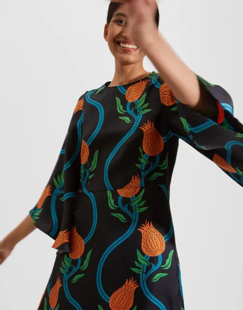How’s about a little something sweet for your next wear-anywhere, all-season investment? The Sorella Dress is as diverse as it is chic and works as well before 9 as it does after 5. We’ve got our eye on it for its flattering hourglass fit that truly nips the waist and forgiving bell sleeves that waterfall from slim-cut shoulders. One for our ladies who prefer a figure-skimming look, and this sultry Melograno print? It’s got decadent fiesta written all over it. Let the compliments commence.