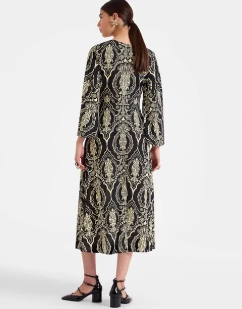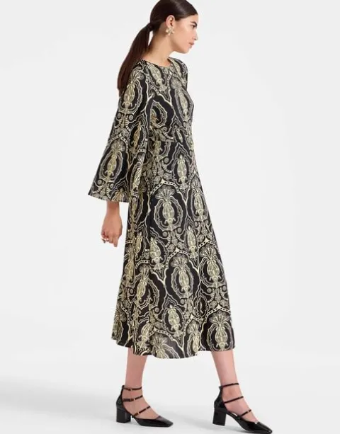 How’s about a little something sweet for your next wear-anywhere, all-season investment? One for our sisters who prefer a figure-skimming look, the Sorella Dress is as diverse as it is chic and works as well before 9 as it does after 5. We’ve got our eye on it for its flattering hourglass fit that truly nips the waist and forgiving bell sleeves that waterfall from slim-cut shoulders. Easy enough for everyday polish cut in comfy flowy jersey – dial things up a notch with vintage earrings and our chic Tones Wedges.