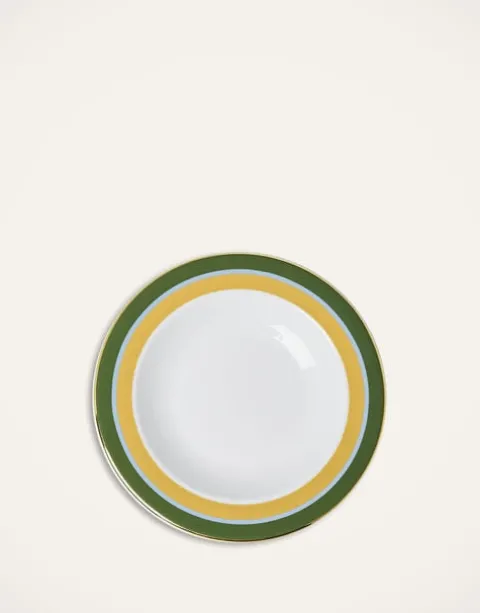 Made of the finest Italian porcelain, our dinner plate set comprises a soup plate (also perfect for your Italian pasta) as well as a flat dinner plate, both crafted from high-quality porcelain with hand-painted gold trim. Inspired by Roma, Italy’s grandiose capital of all things amore, this version combines dramatic geometrics and romantic florals for an infatuating holiday setting with zero effort required. Want to amp up the opulence? Our complete Roman Holiday collection is here to serve, brimming with Dessert Plates, Vases, Tablecloths, Trinket Trays and the rest.