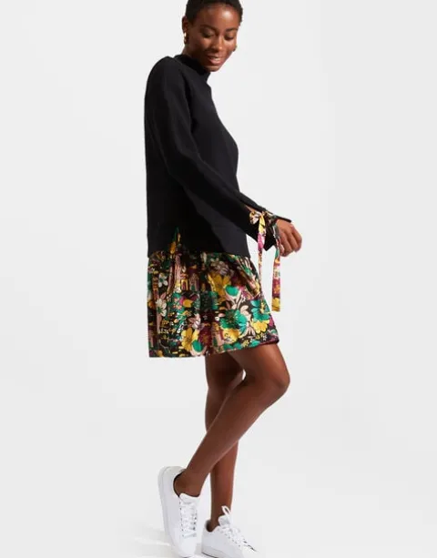 The Sporty Dress puts a cute style spin on the humble sweatshirt so you don’t have to. Done in our soft 100% cotton felpa, the sweatshirt part does the casual-comfy-cosy thing, while the silky twill flippy skirt adds a flirty touch. As for the details, we love that mock neckline and ribbons on the sleeves you can tie or let loose. It’s cute for city cocktails, but just as easy for a casual Sunday. You know we love a little high-low mix.