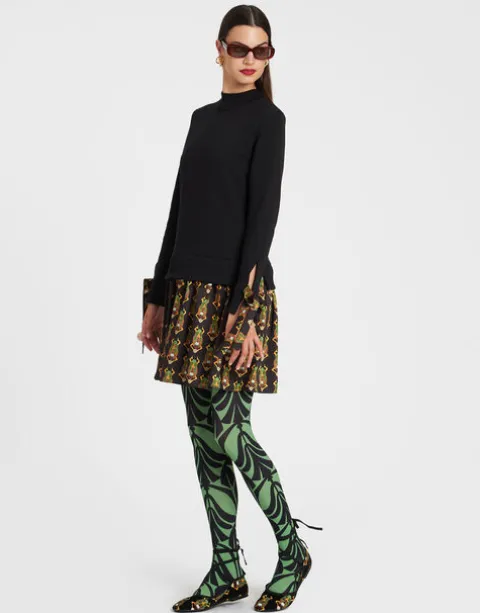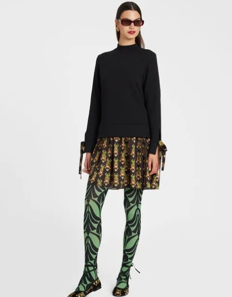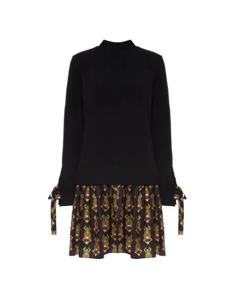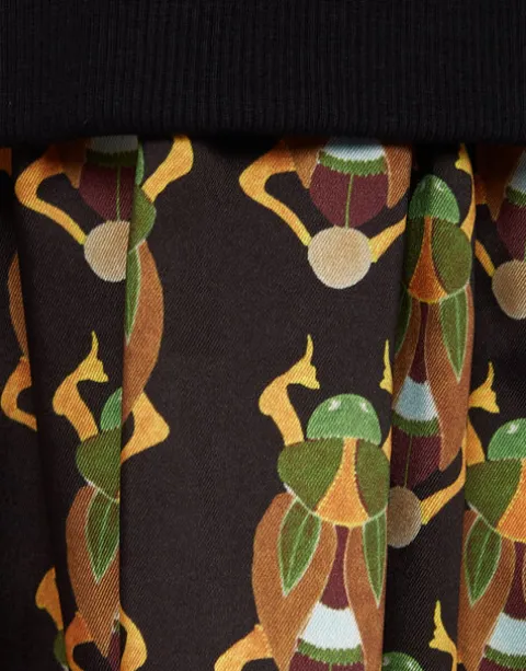 The Sporty Dress puts a cute style spin on the humble sweatshirt so you don’t have to. While its black sweatshirt top does the casual-comfy-cosy thing, the silky twill flippy skirt in our enchanting Scarab print adds a flirty, dressy touch. As for the details, we love that mock neckline and ribbons on the sleeves you can tie or let loose. It’s cute for city cocktails, but just as easy for a casual Sunday. You know we love a little high-low mix.