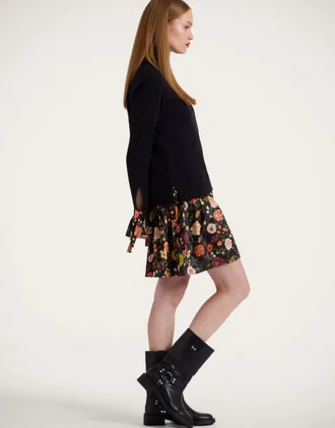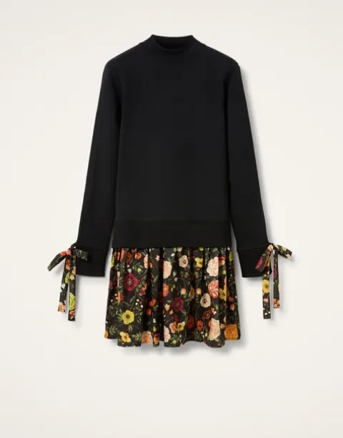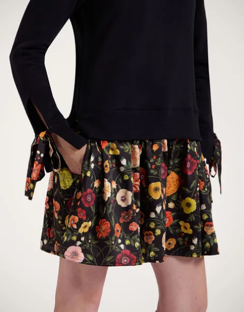 The Sporty Dress puts a cute style spin on the humble sweatshirt so you don’t have to. Done in our soft 100% cotton felpa, the sweatshirt part does the casual-comfy-cosy thing, while the silky twill flippy skirt adds a flirty touch. As for the details, we love that mock neckline and ribbons on the sleeves you can tie or let loose. Finished in this vintage Arcturus print, it’s as cute for city cocktails as it is easy for a casual Sunday. You know we love a little high-low mix.