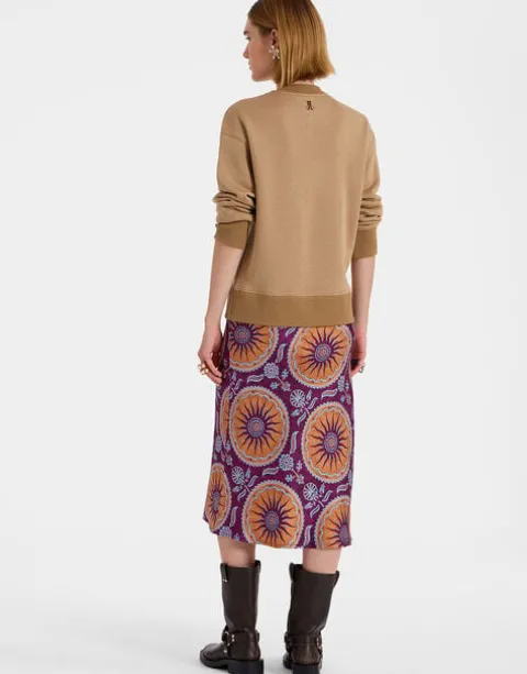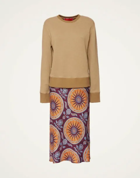 We’d give anything to look like 90s Liv Tyler, but we’ll settle for what we imagine would have been her favourite “Empire Records” era dress. A classic, oversized solid crew neck up top with a floor length silk maxi skirt below, this is dazzling daytime one-and-done design. Pair her with chunky boots for a straight-from-the-music-festival feel, or with one of our Foulard scarves tied around your neck for a European flair.