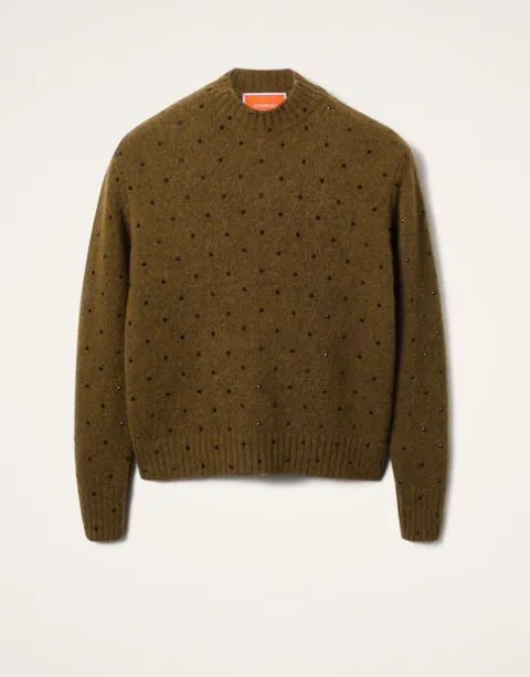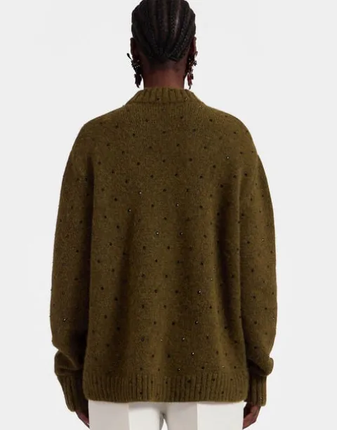 Who says your jewelry box gets to have all the fun. Ad star power to your sweater game with this Alpaca and Merino wool blended beauty embroidered with crystals across it. It hits just below the hip and is a little oversized but in a slim straight cut, meaning it looks marvellous over jeans or a floaty skirt with sneakers.