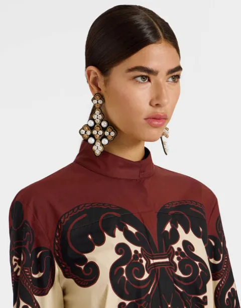 As smart as it is serene, our Sundowner shirtdress will take you from boardroom to beach sunset in a snap. Crafted in our crispy cotton poplin, it features a Korean collar, concealed buttons and a truly effortless silhouette that requires zero styling tricks on top. Our ultra-chic hand-placed Mudejar print deserves to mingle in a Piero Portaluppi design-scape – we’re wearing it with knee-high boots until that summer sunset arrives.
