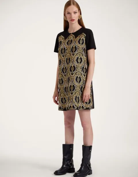 What happens when you take an LDJ icon, amplify it with special fabrications and embellishments, and then raise the hem for added ooh la la? You get the Super Swing Mini, amore, a gorgeous, all figure flattering day-to-night silhouette in this stunning Italian emrboidery. Same classic t-shirt shape, same perfectly placed hidden side pockets, just with the decadence dial turned up to 100.