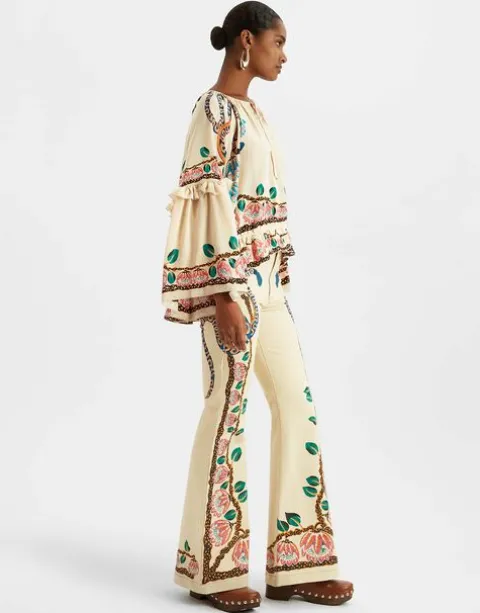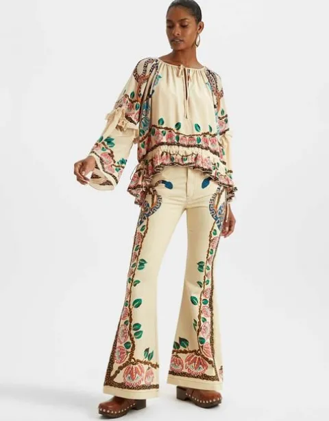 Jane Birkin called, she wants her flares back. Seventies inspired with a modern twist, the Superflare Jeans hug you in all the right places, accentuating the waist, skimming the thighs and fanning out into a dramatic and deliciously on-trend bell-bottom. As part of our Spring capsule with Estelle Pigault and Chiara Totire, this denim delivers It-girl approved cool. With their hand-placed to perfection print, they pair beautiful with the matching Boho blouse, but look just as stunning with a simple tee or button down.