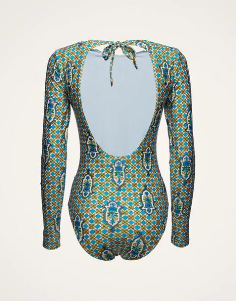 This long-sleeved backless Surf Suit is a major game changer. Sure, you can wear it hanging ten off the Malibu coast, but it can also be your new yoga class BFF or brunch-ready body suit. It’s versatile! With long sleeves and a cut out back that ties up at the nape of the neck, it shows the perfect amount of peekaboo skin for when you don’t feel like baring it all. The leg is low cut so it totally covers the bum, as well.