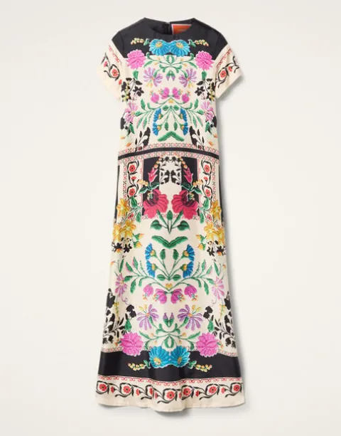 You never forget your first love and this is the story of our Swing Dress. LDJ’s very first model, this easiest of silhouettes is designed to take you from Sunday breakfast to a snappy desk job and all the way through cocktails. We’ve crafted it from our substantial silk twill that doesn’t cling and cut it slim in the shoulders, generous in the hips. Pockets? We got ‘em, plus a long A-line hem for sassier swooshing. Perfect for spring, let this hand-placed Plaza print enthral with its exquisite florals (which are actually pretty groundbreaking, we think).