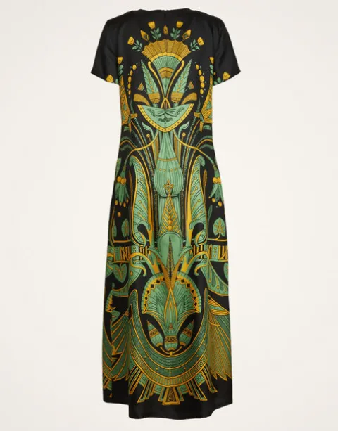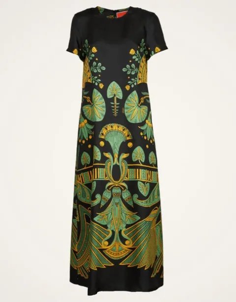 You never forget your first love and this is the story of our Swing Dress. LDJ’s very first model, this easiest of silhouettes is designed to take you from Sunday breakfast to a snappy desk job and all the way through cocktails. We’ve crafted it from our substantial silk twill that doesn’t cling and cut it slim in the shoulders, generous in the hips. Pockets? We got ‘em, plus a long A-line hem for sassier swooshing. Activate your inner goddess with this vintage Nile print inspired by Ancient Egypt.