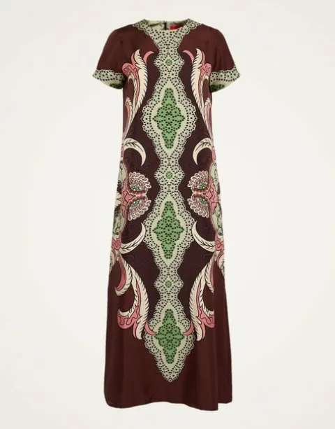 You never forget your first love and this is the story of our Swing Dress. LDJ’s very first model, this easiest of silhouettes is designed to take you from Sunday breakfast to a snappy desk job and all the way through cocktails. We’ve crafted it from our substantial silk twill that doesn’t cling and cut it slim in the shoulders, generous in the hips. Pockets? We got ‘em, plus a long A-line hem for sassier swooshing. Exude where-did-you-get-that beauty in this hand-placed Renaissance-inspired print.