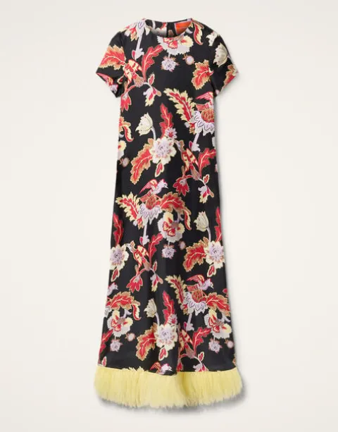You never forget your first love and this is the story of our Swing Dress. LDJ’s very first model, this easiest of silhouettes is designed to take you from Sunday breakfast to a snappy desk job and all the way through cocktails. We’ve crafted it from our substantial silk twill that doesn’t cling and cut it slim in the shoulders, generous in the hips. More fabulous, did you say? We’ll let that high-vibing ostrich feather trim do the talking.