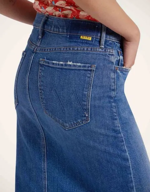 The Midi Skirt is having a moment, and we are HERE for it. For their Ciao Mamma! collaboration, La DoubleJ and MOTHER have dreamt up the new must-have midi in a semi-rigid SUPERIOR light-blue denim, and adorned it with an embroidered yellow dragonfly on the coin pocket for a touch of good luck. Sitting low on the hips, this beauty skims the figure and has buttons all down the front to be undone to your desired level of va va voom.