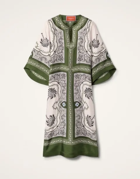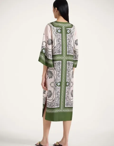 Not all kaftans are created equal. This all-figure flattering addition to our kaftan family arrives in luxurious Italian silk twill, with bow sleeves for ultimate bohemian elegance. A more square structure than her voluminous sisters, but floatier than her cotton counterpart, this is an elevated take on a classic summer shape. Looking to add some Slim Aarons energy to your summer? Just add earrings.