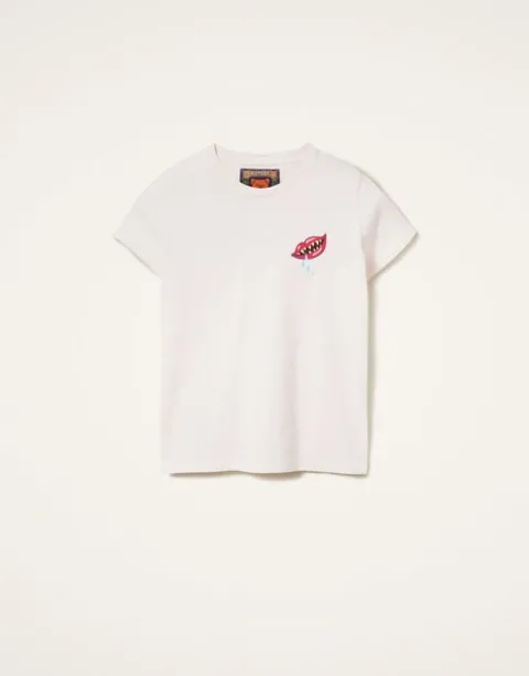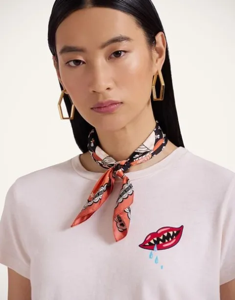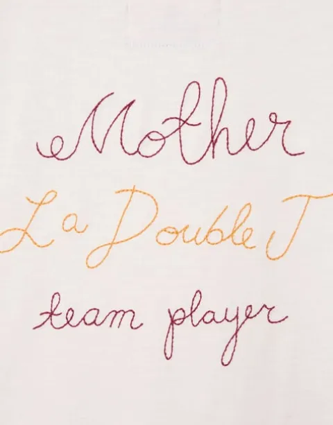 A classic crew with a mood-boosting twist, this tee arrives as part of the Ciao Mamma! collaboration between La Double J and MOTHER. With a slim fit for a vintage look and feel, this white tee comes with a cute twist featuring a printed mouth on the front and embroidered cursive script on the back. Join the team, bella!