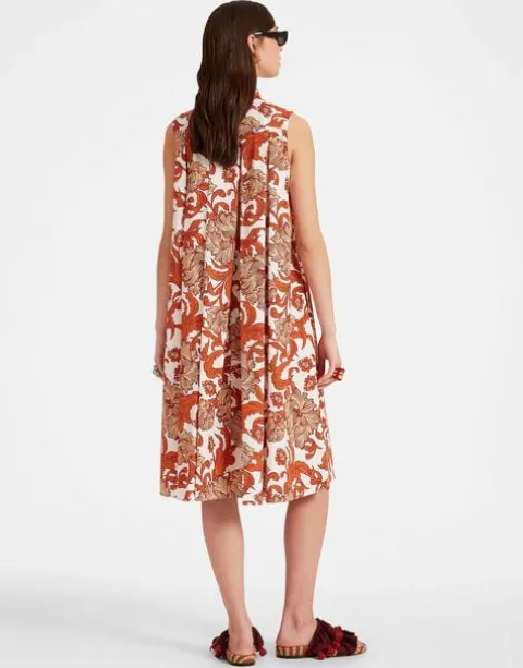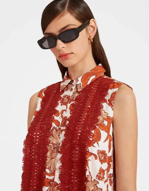 As at home on Perry Street as she is strolling through Palermo, the Tootsie is a summer wardrobe wonder you’ll keep in your closet for eternity. A sleeveless straight silhouette with a classic collar, this is timeless day-to-eveniing attire, whose buttons can be opened up completely for a laid back beach look. Intricate, contrast lace panels down the front make this more than a simple everyday staple – minimalists can opt for the colorblocked version while more maximalist dressers can go for the radiant Reef print option, both in crisp 100% Italian cotton.