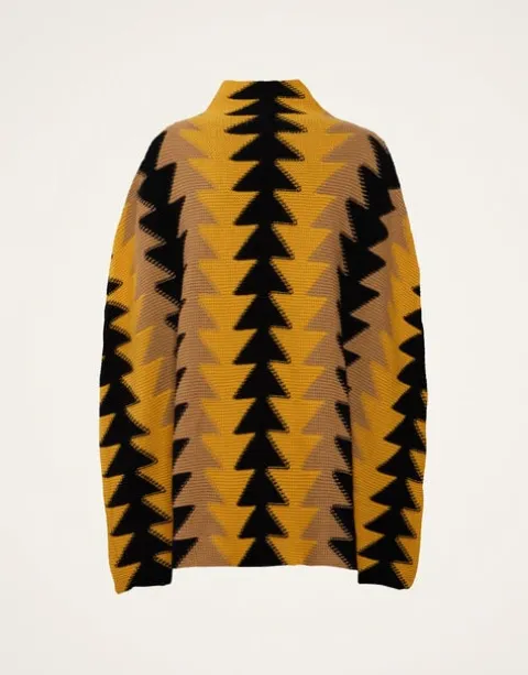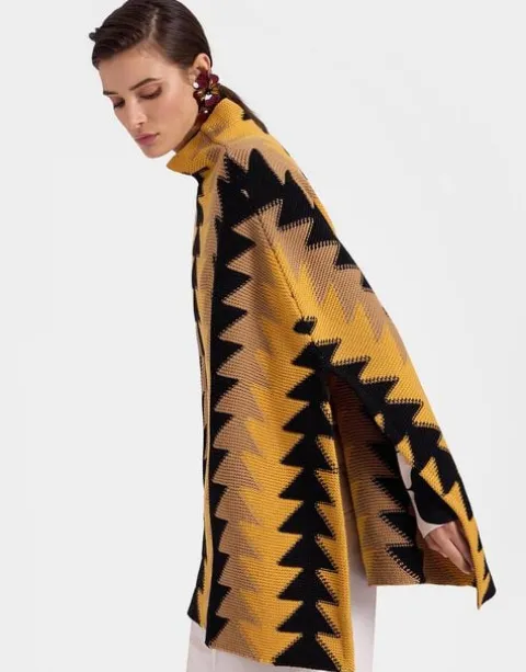 We’re calling it – this Trine Cape is the perfect transitional style savior. Crafted from a sumptuous Italian wool and alpaca blend, this piece hits all the high notes (and just the right height on the thigh). With an elegant high neck and deep romantic slits up the arm, the silhouette is sleek and simple, to let the rich intarsia embroidery really shine. Pair her with our over-the-knee boots for a sassy Seventies look, or over tights and high-tops for a sophisticated spin on street-chic.