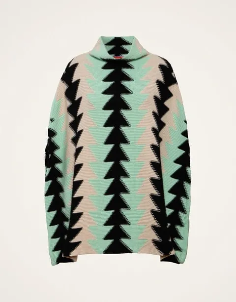 We’re calling it – this Trine Cape is the perfect transitional style savior. Crafted from a sumptuous Italian wool and alpaca blend, this piece hits all the high notes (and just the right height on the thigh). With an elegant high neck and deep romantic slits up the arm, the silhouette is sleek and simple, to let the rich intarsia embroidery really shine. Pair her with our over-the-knee boots for a sassy Seventies look, or over tights and high-tops for a sophisticated spin on street-chic.