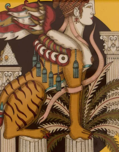 Proud, powerful, and positively brimming with otherworldly inspiration, the Sphynx is the most mysterious of the Guardians in this collection. Often seen as the symbol of the muse, she arrives here in energy-activating color and 18K-gold accents, designed to ignite your creative fire and illuminate your imagination. Whether you use this Trinket Tray as a jewelry vessel, a key holder on the mantle, or for to add a little energy elevation at your aperitivo, let the Sphynx steer you toward a more magnetic and magical mood.Crafted in collaboration with Turin-based artist Elisa Seitzinger, the Guardian Collection features five energy-protecting supernatural stewards;The Unicorn; The Sphinx; The Angel; The Dragon: The Mermaid. With intricate hidden symbols lovingly etched, painted or printed onto each piece, these are more than mere beautiful objects – these are vibration-raising, mood-boosting, positivity-bringing happiness generators. Select the specific Guardian that activates your desired energy, or collect all five for maximum cosmic consciousness.If so moved, feel free to use this mantra with your Guardian item: “I step into my full wisdom & sovereignty”