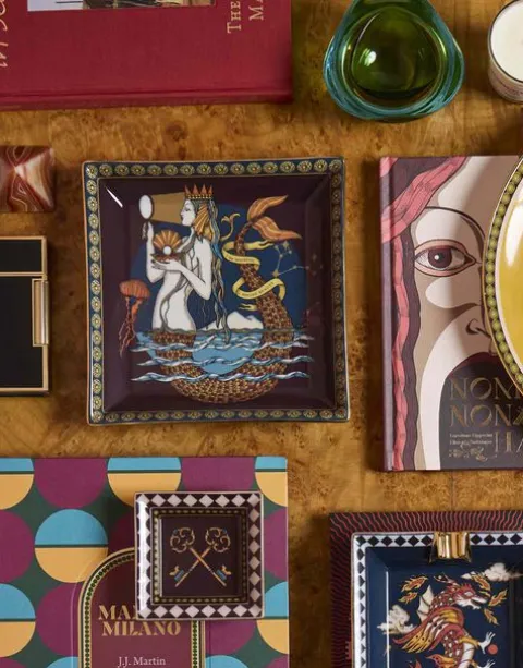 An iconic symbol of divine beauty, the Mermaid is equal parts femininity and fortitude. The queen of our emotions, we see her here rising from the depths of the ocean, captured to beautiful effect by artist Elisa Seitzinger. As one of our Guardians, she serves as the custodian of your sensuality and your heart, making this 18K-gold trimmed Trinket Tray the perfect present to your beloved or as part of your personal collection to help fortify your feminine energies.Crafted in collaboration with Turin-based artist Elisa Seitzinger, the Guardian Collection features five energy-protecting supernatural stewards;The Unicorn; The Sphinx; The Angel; The Dragon: The Mermaid. With intricate hidden symbols lovingly etched, painted or printed onto each piece, these are more than mere beautiful objects – these are vibration-raising, mood-boosting, positivity-bringing happiness generators. Select the specific Guardian that activates your desired energy, or collect all five for maximum cosmic consciousness.If so moved, feel free to use this mantra with your Guardian item: “I surrender to the depths of the Divine Feminine”