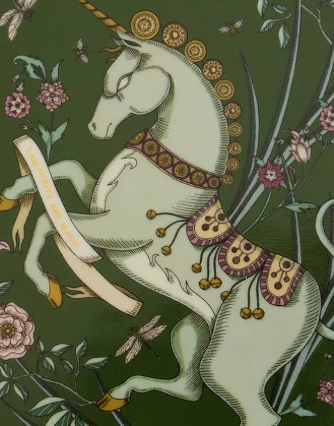 The unicorn is the embodiment of purity and magic, a symbol of the imagination’s ability to create worlds beyond human capability. The blooms encircling this fantastical guardian speak to the creature’s innate connection to wild, untamed nature. We at La DoubleJ, as young at heart seekers forever hunting inspiration, look for “unicorns” everywhere, and this beautiful Trinket Tray (which doubles as a key vessel, jewelry display and pistachio dish for your evening aperitivo) is just one of the pieces we simply had to paint her likeness on…Crafted in collaboration with Turin-based artist Elisa Seitzinger, the Guardian Collection features five energy-protecting supernatural stewards;The Unicorn; The Sphinx; The Angel; The Dragon: The Mermaid. With intricate hidden symbols lovingly etched, painted or printed onto each piece, these are more than mere beautiful objects – these are vibration-raising, mood-boosting, positivity-bringing happiness generators. Select the specific Guardian that activates your desired energy, or collect all five for maximum cosmic consciousness.If so moved, feel free to use this mantra with your Guardian item: “I merge with the magic and purity within”