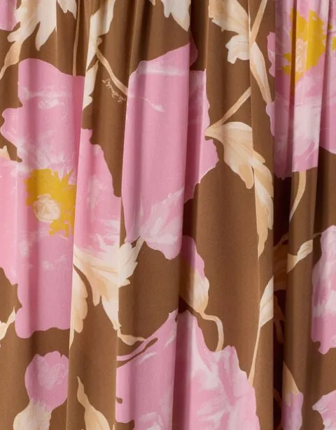 An evening dress inspired by Italy’s chicest family – palazzo not required. Crafted in our ultra-luxe silk crepe de chine that flutters and flows, this fiercely feminine beauty arrives extra enchanting in this Sylph print. Floor length with a single tier in the skirt, it has a mock neck with ruching around the décolleté, slightly gathered shoulders and sleeves that end in frilled bells. Prepare to be beguiling!