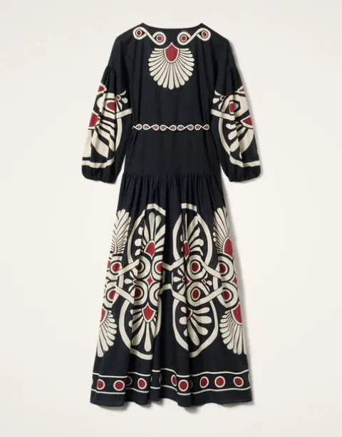 Named for our Italian street-chic icon and La DoubleJ’s first ever Creative Director, Viviana Volpicella, this dress dazzles from every angle. Crafted from light as air cotton muslin, she positively floats as she skims the floor (or sand, depending on your summer destination). With ties down the open V neck to contrast her long, wide, diaphanous silhouette, she’s more dramatic than demure, as at home at a glamorous city soiree as she is at a barefoot beach party.