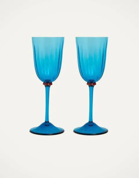 Wine glasses, but make them DoubleJ. Super saturated with maximalist flair, this set of two is each handblown in Verona with ridged details and sophisticated stems in transparent Murano glass. Perfect for instantly pepping up a white tablecloth for dinner on the everyday (why not!) or mixing and matching with our other shades for a vibrant aperitivo spread. Each glass features all the unique signs and marks of the island’s production methods: those rings, bubbles and marks are happy proof of the most kick-ass artisan hands.
