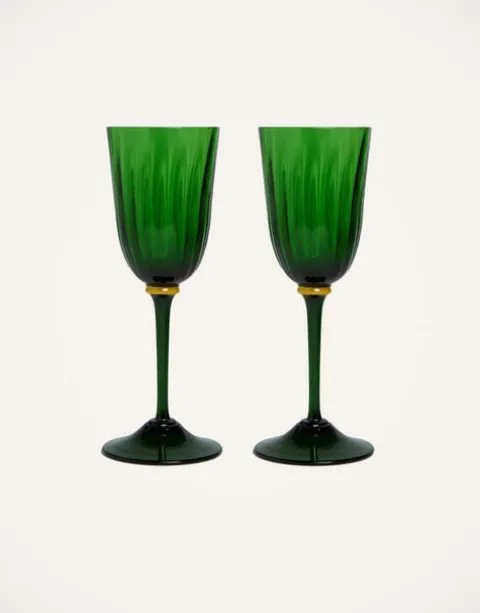 Wine glasses, but make them DoubleJ. Super saturated with maximalist flair, this set of two is each handblown in Verona with ridged details and sophisticated stems in transparent Murano glass. Perfect for instantly pepping up a white tablecloth for dinner on the everyday (why not!) or mixing and matching with our other shades for a vibrant aperitivo spread. Each glass features all the unique signs and marks of the island’s production methods: those rings, bubbles and marks are happy proof of the most kick-ass artisan hands.