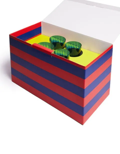 You told us you wanted wine glasses, so we made wine glasses, babe! Created in partnership with world-renowned Venetian glassmaker Salviati, these mega-cool rainbow-color-blocked rigadin glasses are handmade in transparent Murano glass. Each glass features all the unique signs and marks of the island’s production methods: those rings, bubbles and marks are supposed to be there. This set of 4 blue glasses is great for pepping up a white tablecloth, or mix with our other shades for a maximalist colour-happy setting. Get the lowdown on the Italian artisans who craft our creations…
